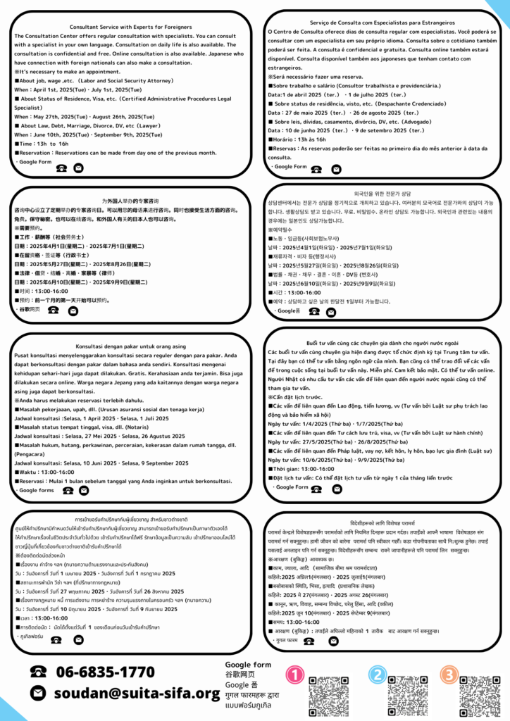 咨询中心设立了定期举办的专家咨询日。可以用你的母语来进行咨询。