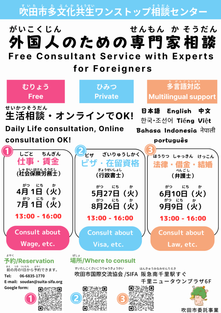 विदेशीहरूसँग सम्बन्ध राक्ने जापानीहरूले पनि परामर्श लिन सक्नुहुन्छ।