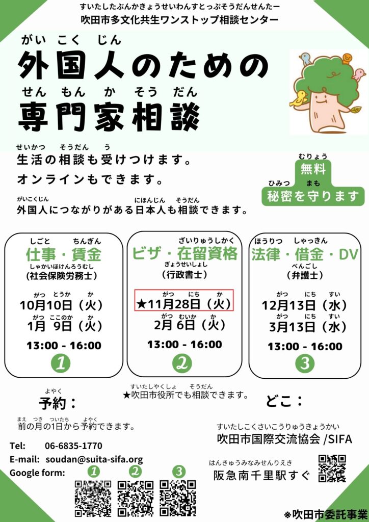 外国人(がいこくじん)のための専門家(せんもんか)相談(そうだん)