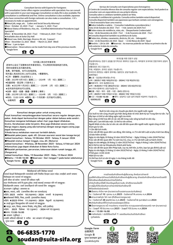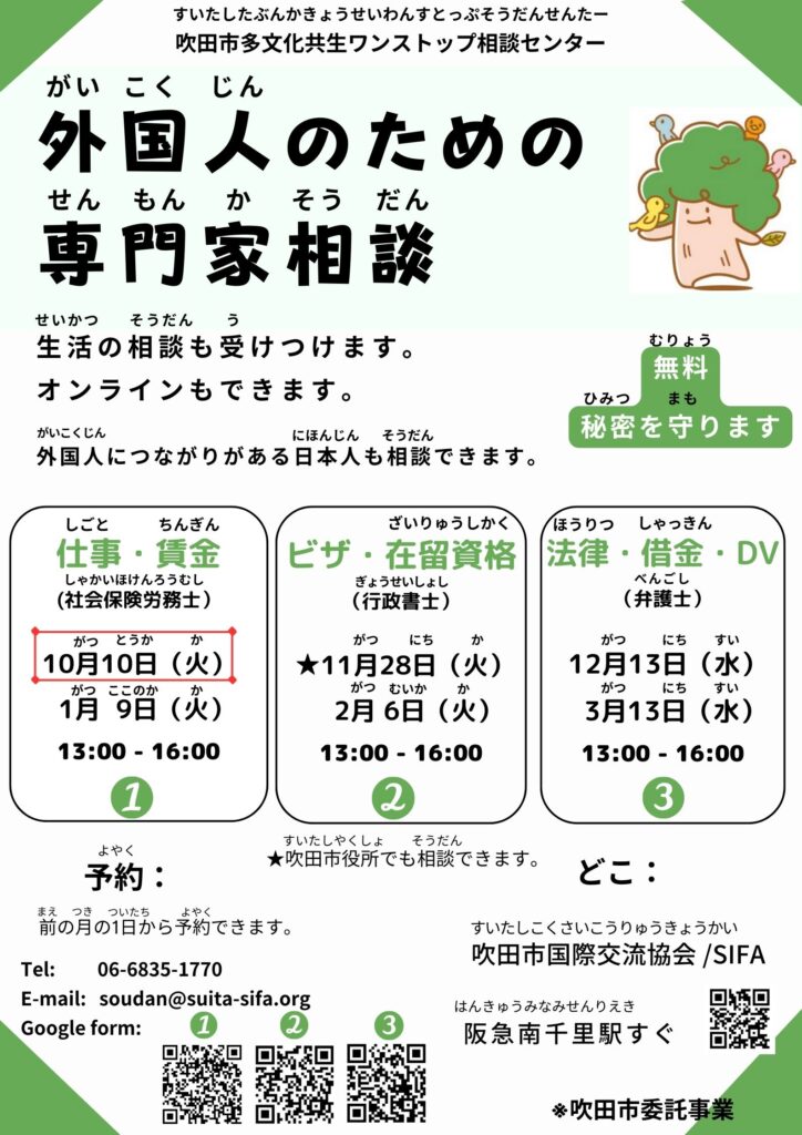 外国人(がいこくじん)のための専門家(せんもんか)相談(そうだん)